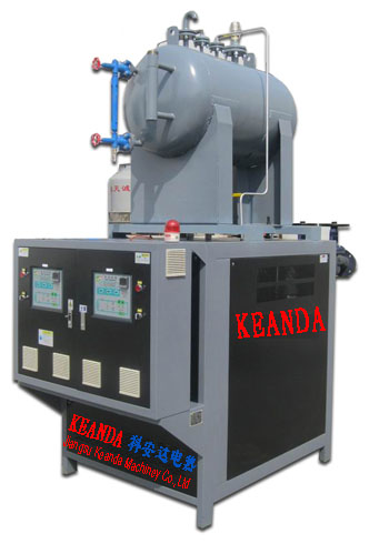 導熱油爐(又稱導熱油加熱器)是將是將電加熱器直接插入有機載體(導熱油)中直接加熱,利用循環(huán)泵,強制導熱油進行液相循環(huán),將熱量傳遞給用一個或多種用熱設備,經(jīng)用熱設備卸載后,重新通過循環(huán)泵,回到加熱器,再吸收熱量,傳遞給用熱設備,如此周而復始,實現(xiàn)熱量的連續(xù)傳遞,使被加熱物體溫度升高,達到加熱的工藝要求。